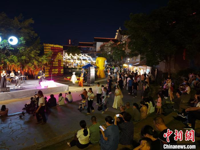 图为广西南宁一街区推出音乐演出活动吸引消费者。林浩摄